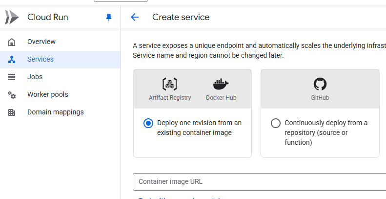 Wgrać obraz można przez kilka sposobów, jednym z nich jest bezpośrednie wgranie obrazu przez panel Cloud Run. drugim wykrzystanie Google SDK shell.